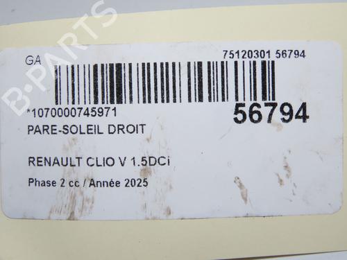 ![Used Right sun visor Right sun visor RENAULT CLIO V (B7_) [2019-2026] 22424984 22424984](https://bparts-eu.s3-eu-west-1.amazonaws.com/images/521661/big/oojvyb99xs8c7i530uogs0vpgi1fr4sa.jpg)